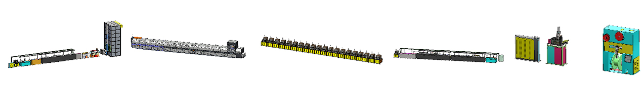 集合前處理、拉絲機、感應回火裝、置鍍銅裝置、收線一體化生產線。設計速度15米/秒,整線長113米。拉絲機部分仍采用伺服直驅式,電機直驅卷筒。取消減速機、皮帶輪、剎車系統(tǒng),設備具有節(jié)能,高效,低維護特點。機身對稱設計,電控與設備融為一體,致力于節(jié)能20%,占地50%,維修40%,提效20%的目標。